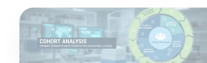 Define patient cohorts, outcome metrics, and clinical logic within our intuitive visual builder.